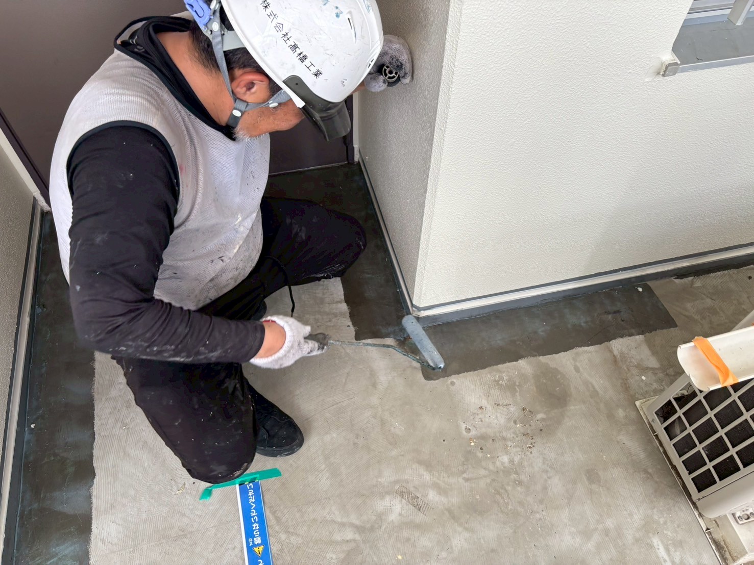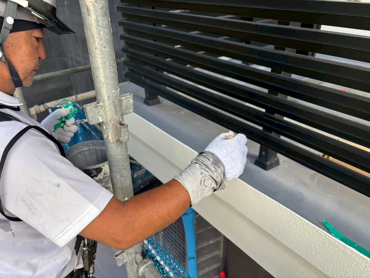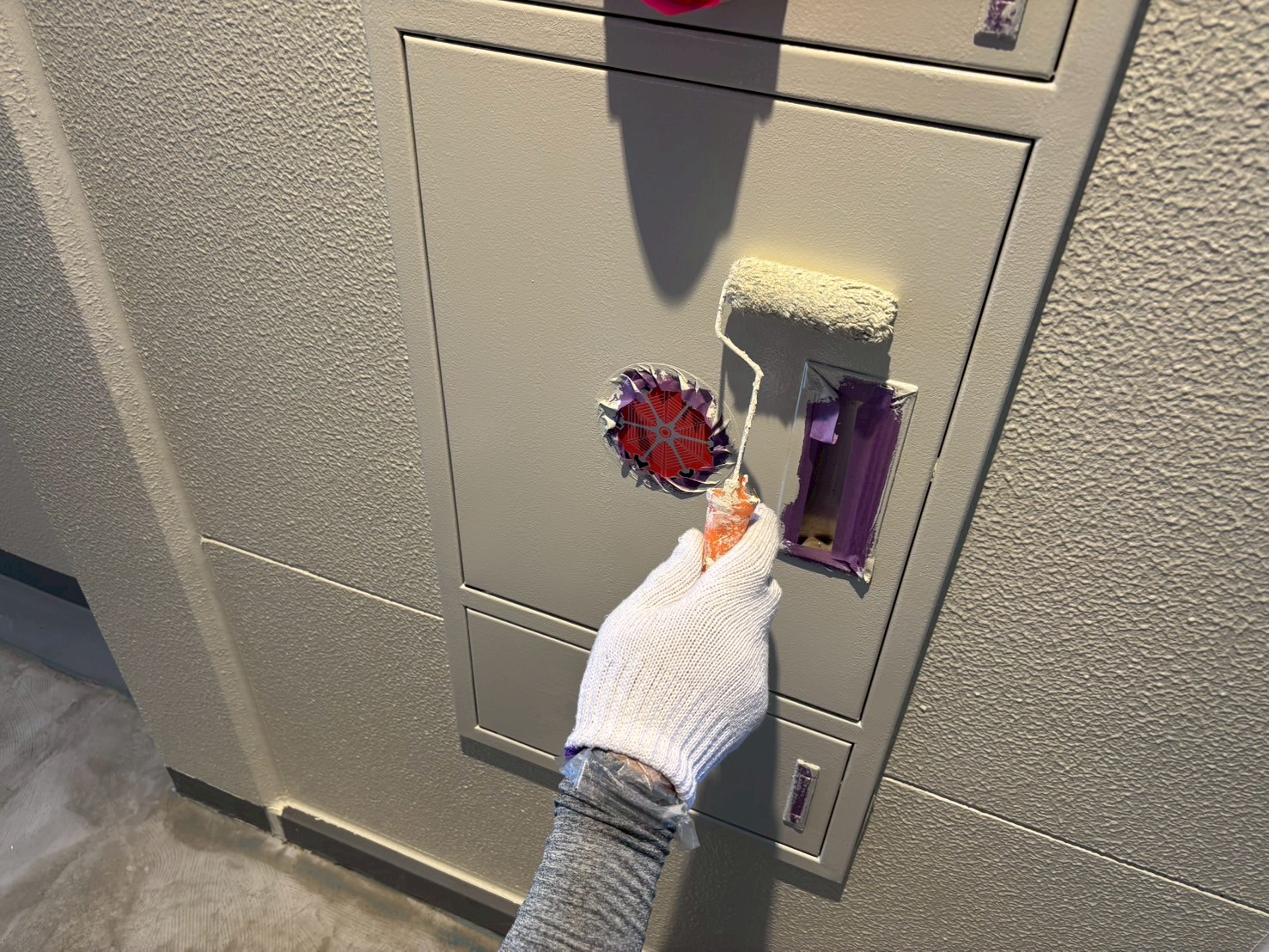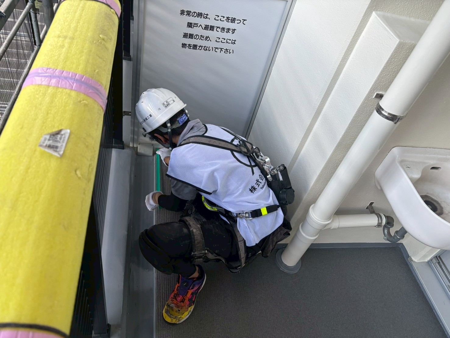 また共用廊下の清掃、ケレン、プライマー塗布作業をいたしました。