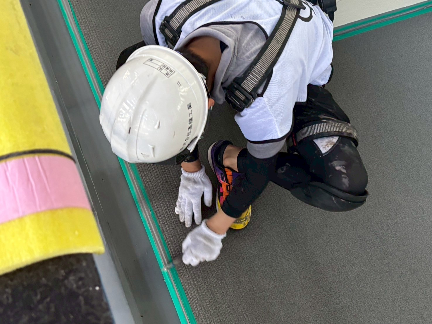 ハッチ周り、壁際、側溝際をシーリング打ちをしているため、踏まないように注意して下さい。