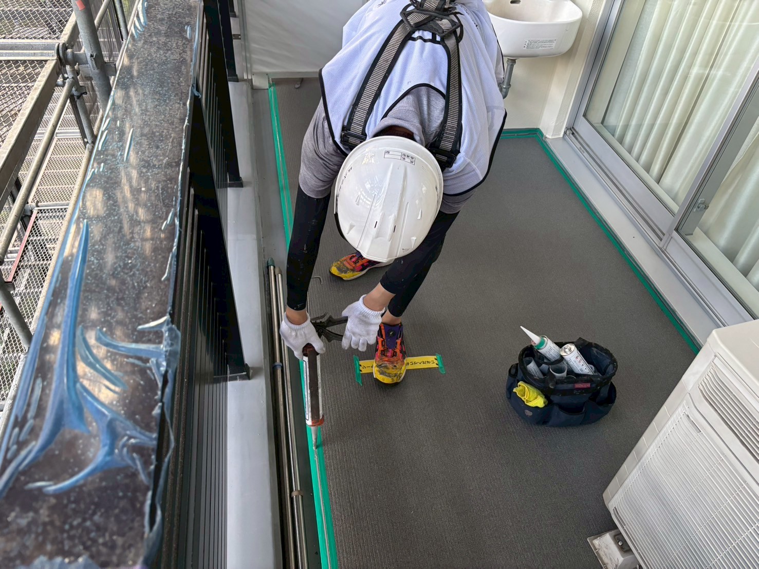 A棟8階から2階バルコニーの端末シーリング打ちをいたしました。