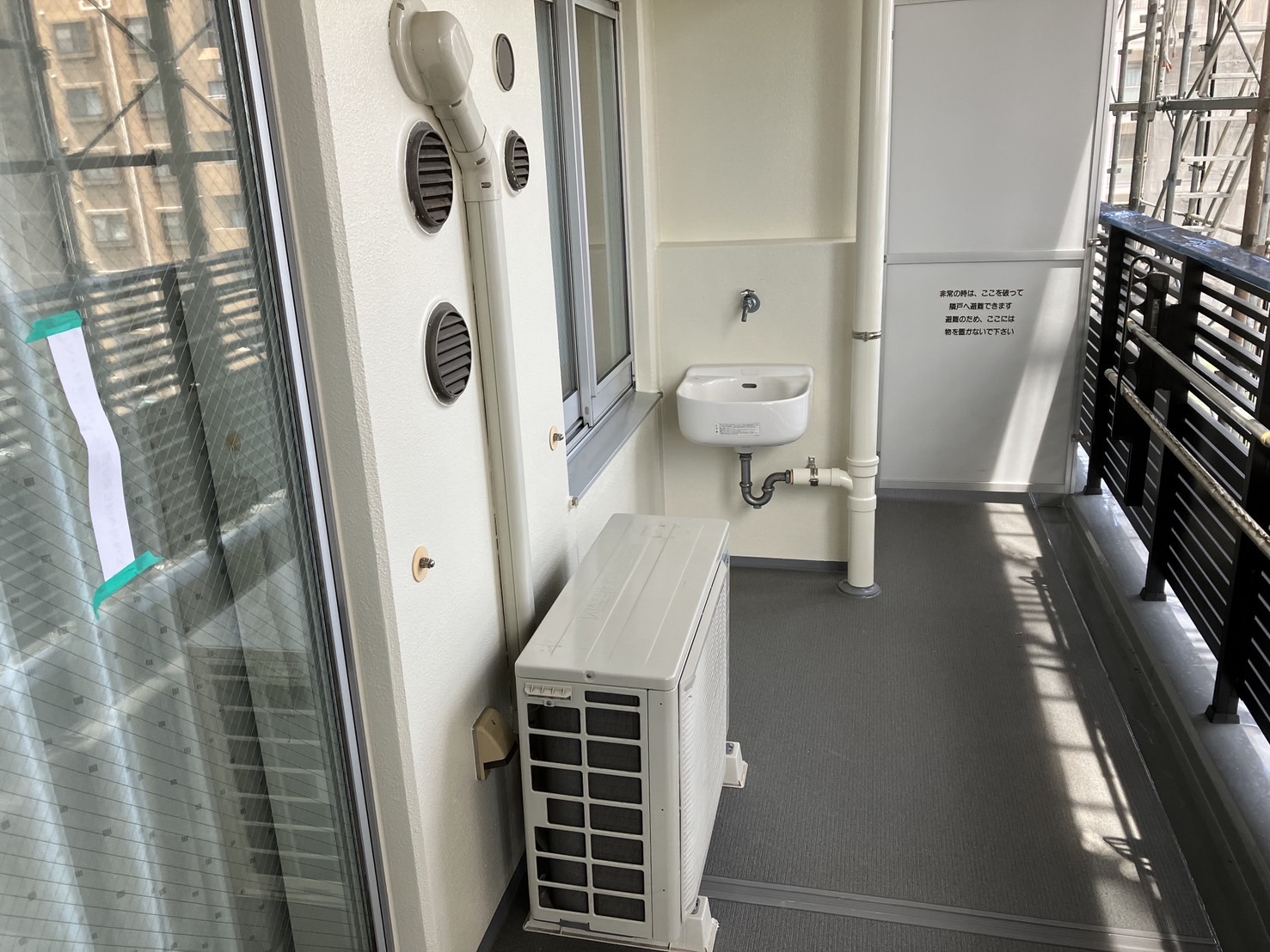 共用廊下のMB扉ビス交換、A棟バルコニーのスリムダクト戻しをいたしました。