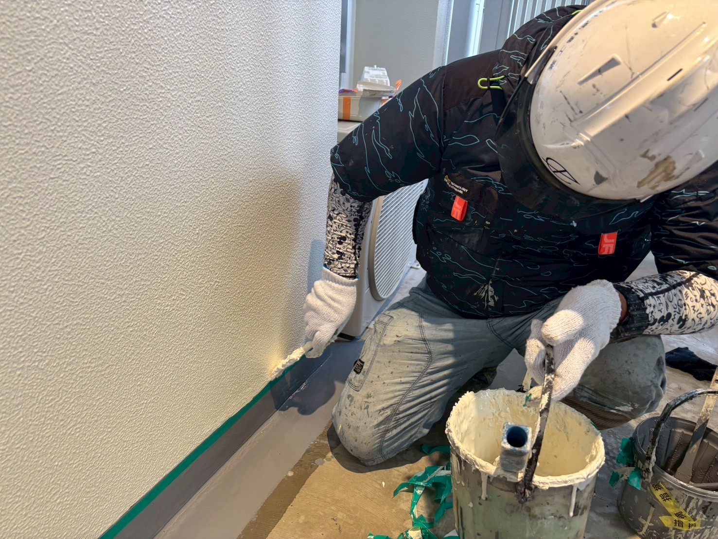 共用廊下15階から10階の手直し、仕上げと8階から2階のプライマー塗布をおこないました。