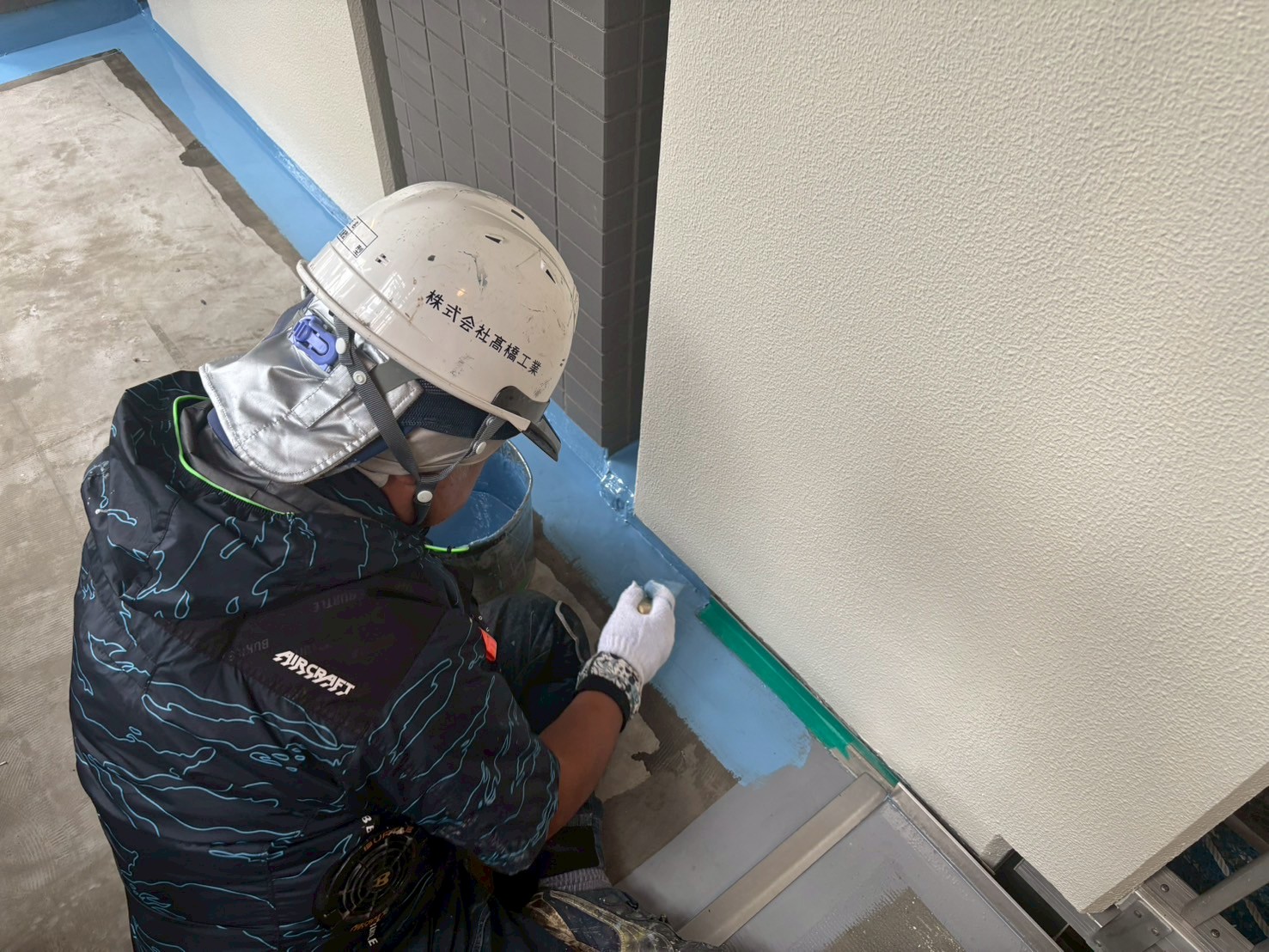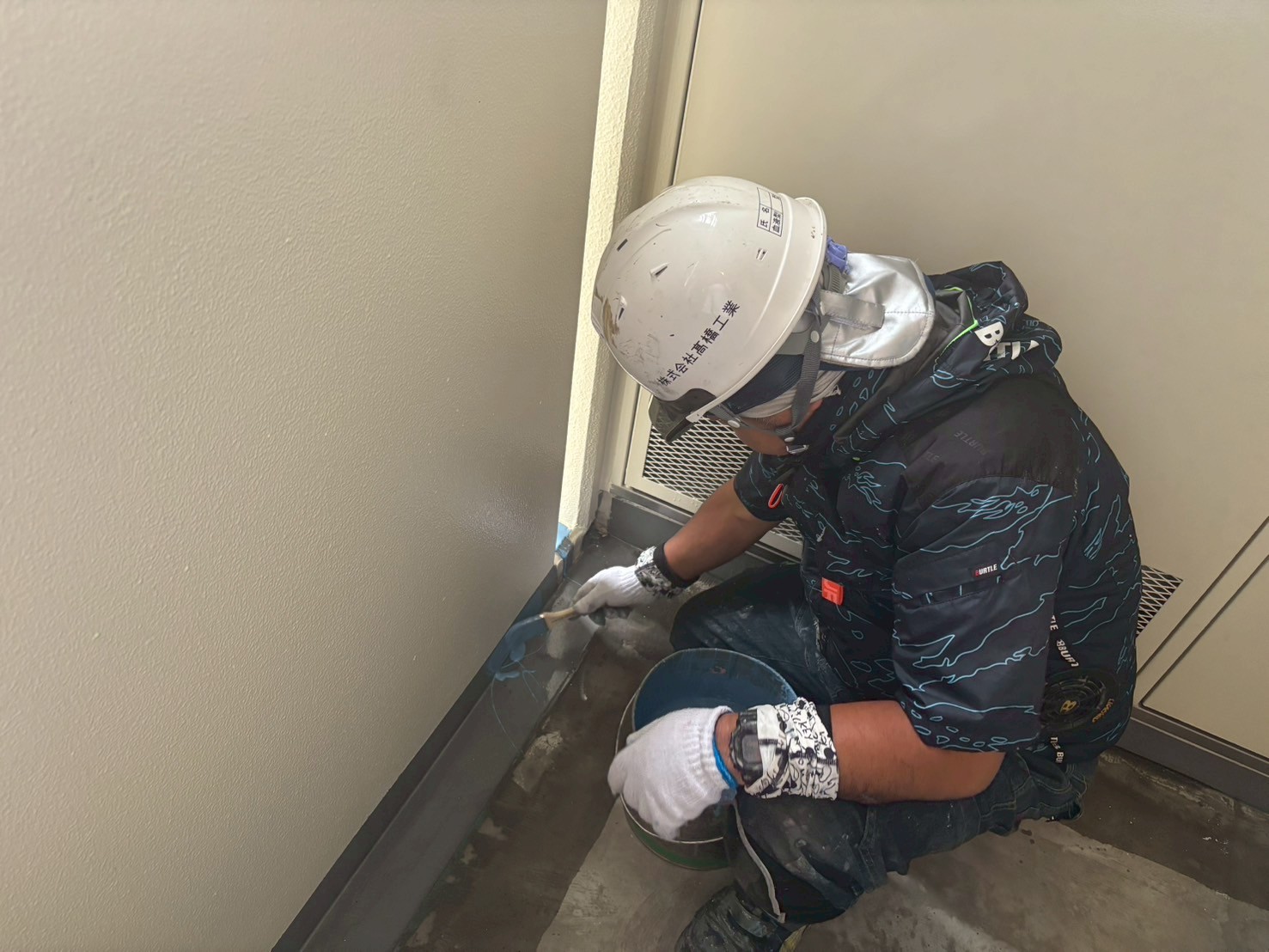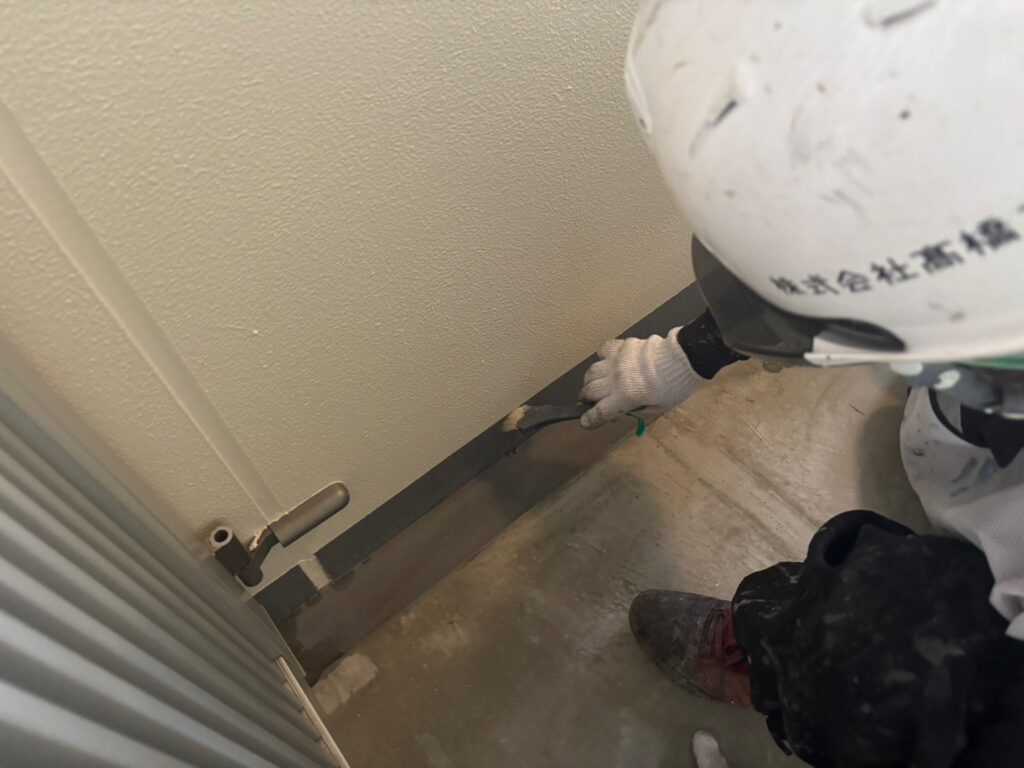 8階から2階の壁際のウレタン防水工事、9階の手直しをおこないました。