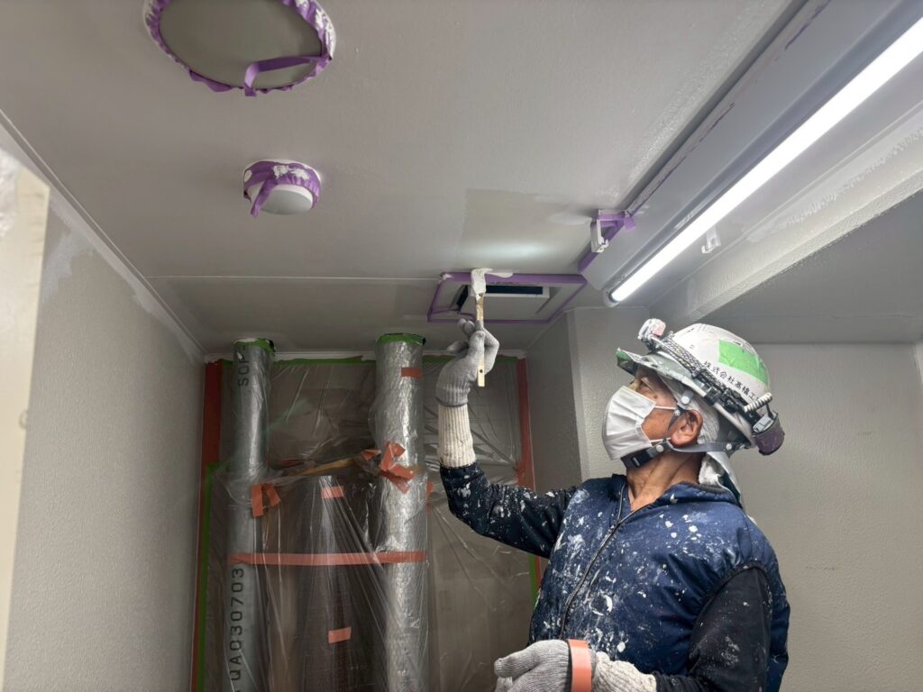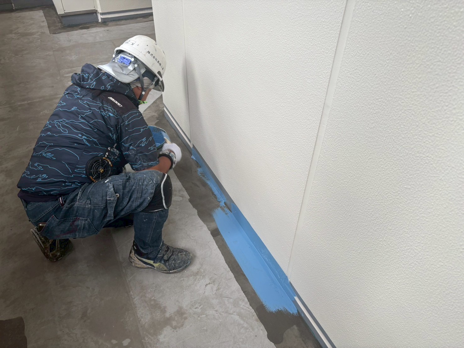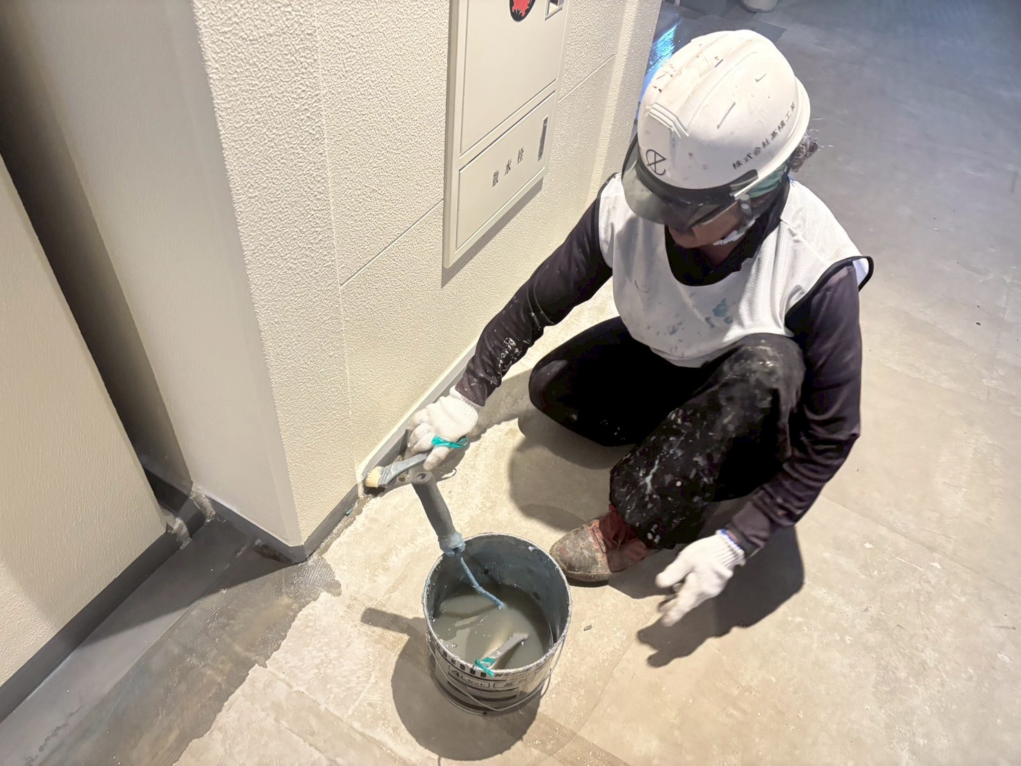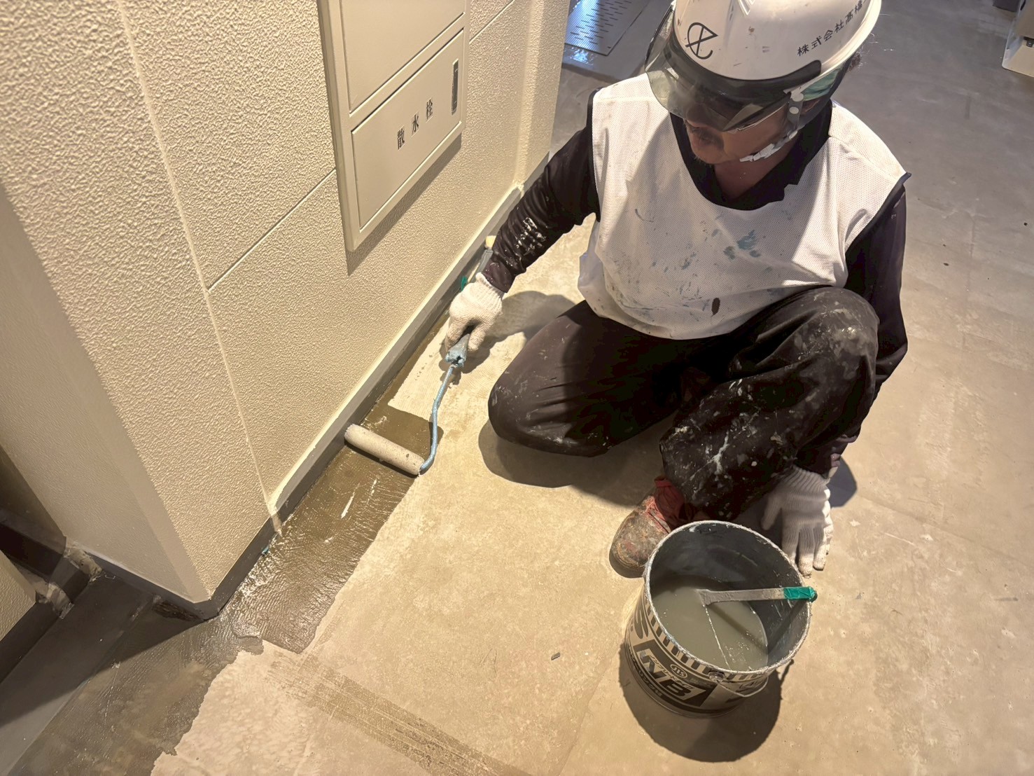 8階から2階の壁際のウレタン防水工事、9階の手直しをおこないました。