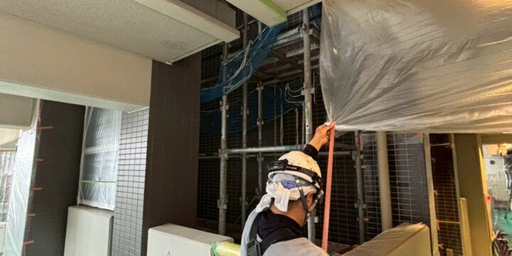 B棟の足場解体前検査、A棟バルコニーの是正、B棟バルコニーの避難ハッチラベル張替え、駐輪場ドアの確認をおこないました。