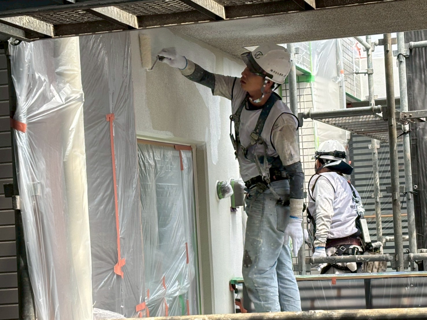 6月2日 月曜日 2025.06.02工事情報 HOME ブログ 工事情報 6月2日 月曜日 塗装工事 B棟バルコニーの養生作業、天井塗装、外壁下塗り塗装、補修跡の肌合わせをおこないました。 天井の肌合わせは、リシン吹付塗装をし、外壁の肌合わせはマスチックローラーをつかいデコボコを作りました。 ウレタン防水工事 A棟バルコニーのウレタン防水工事 3階から8階の1層目のウレタン塗布をおこないました。 明日6月3日は雨予報のため休工いたします。 その他工事 センサーカメラの設置、養生の張り直しや、清掃をおこないました。 6月3日 火曜日 予定 ・悪天候により休工いたします。 6月4日 水曜日 予定 ・塗装工事 ・ウレタン防水工事 工事情報 5月31日 土曜日 6月4日 水曜日 関連記事一覧 4月11日 金曜日 2025.04.11工事情報 5月9日 金曜日 2025.05.09工事情報 7月19日 土曜日 2025.07.22工事情報 7月28日 月曜日 2025.07.28工事情報