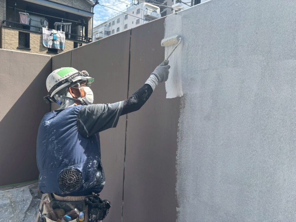 明日7月1日(火)は引き続き8階から2階の側溝のウレタン2層目、階段のウレタン防水をおこないます。