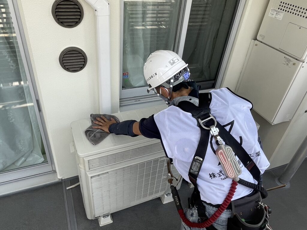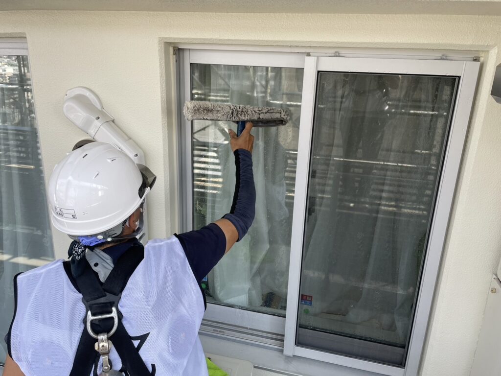 明日7月1日(火)は4階から2階のクリーニング工事とA棟西側・東側の窓のクリーニング工事をおこないます。