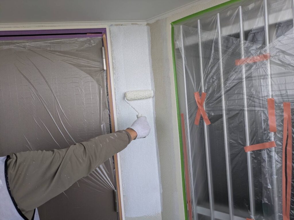 共用廊下の15階から9階の天井塗装、壁の下塗り塗装をおこないました。