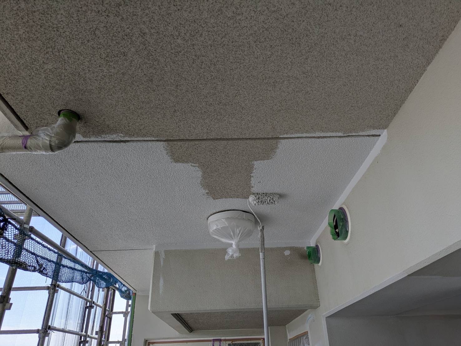 共用廊下の15階から9階の天井塗装、壁の下塗り塗装をおこないました。