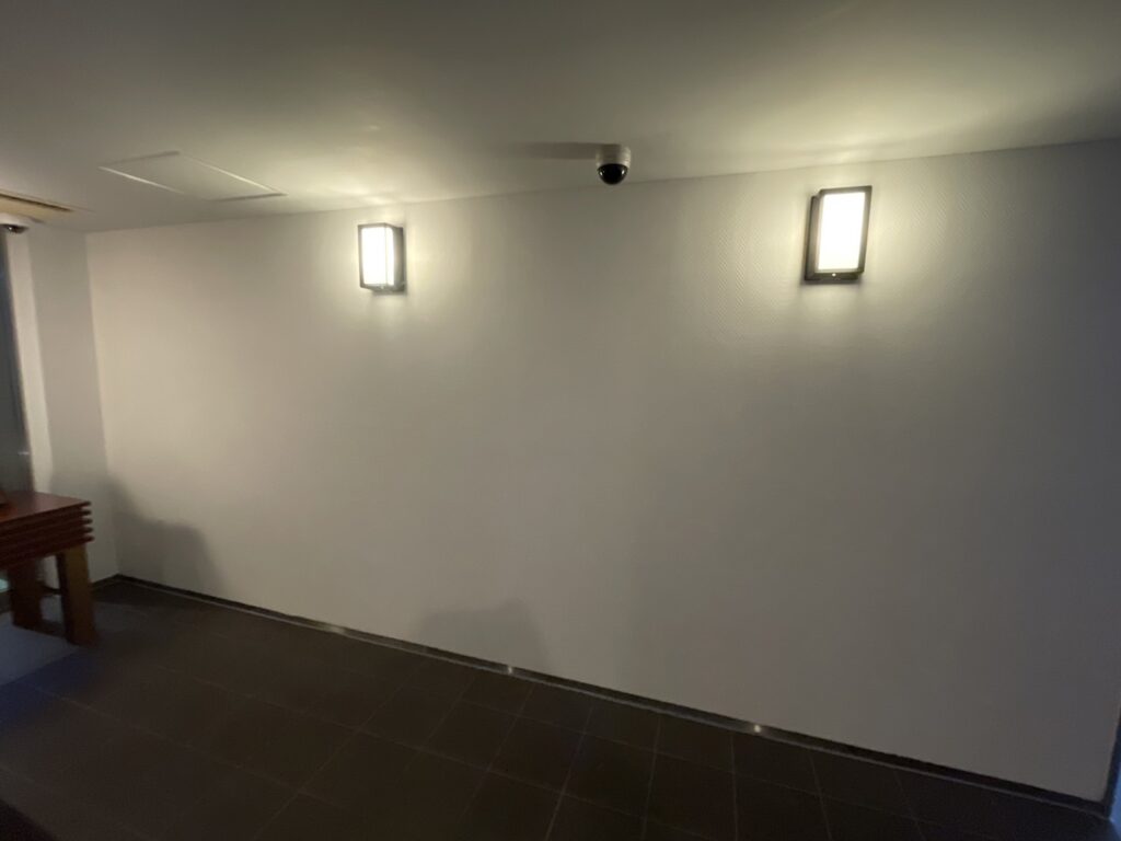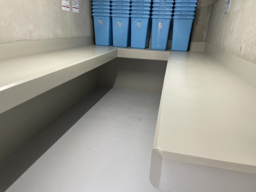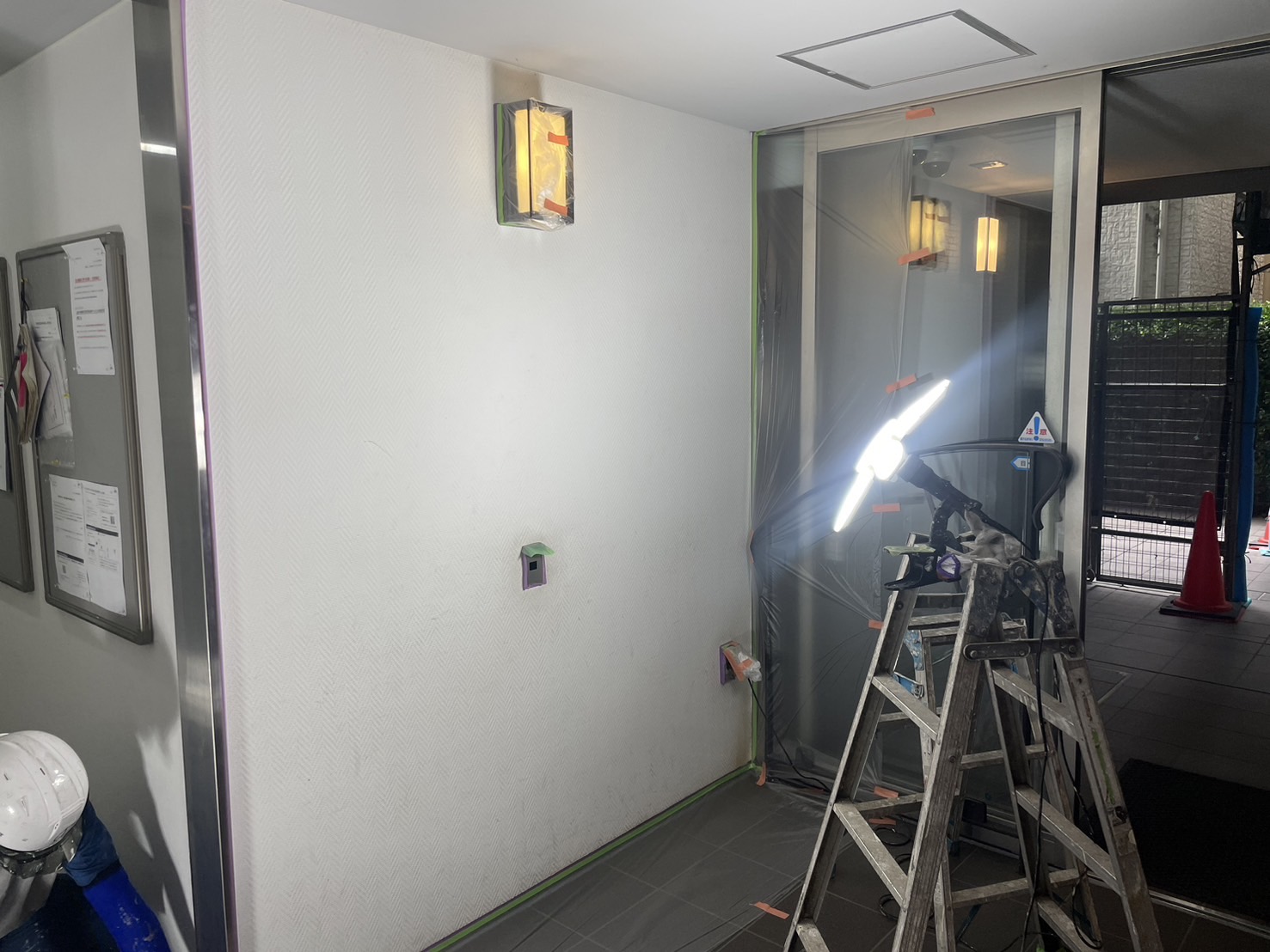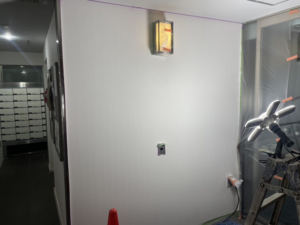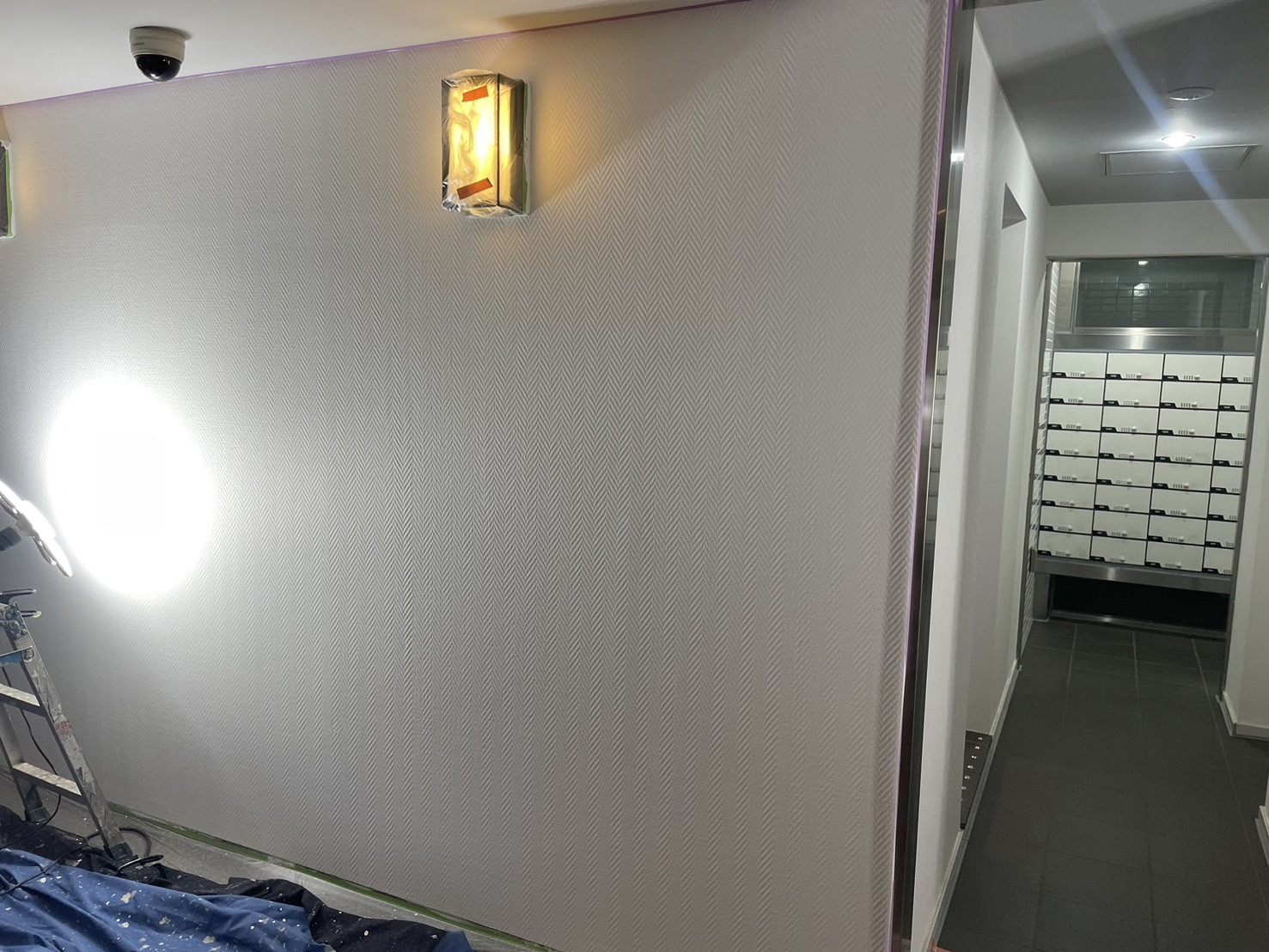 ゴミ置き場の塗装工事、エントランス内のクロスの塗装をおこないました。