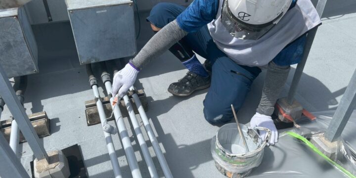 明日は7階から2階の仕上げ塗装と、1階西側ゴミ置き場屋根と集会室屋根のケレン・清掃・プライマーを予定しております。