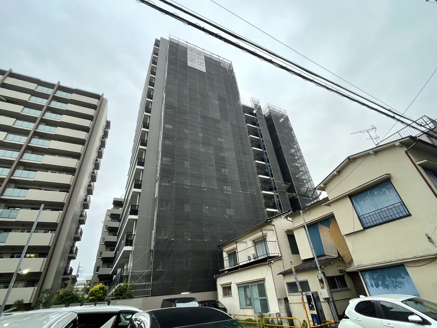 A棟南面(バルコニー)の足場解体とA棟B棟間の一部足場解体をおこないました。