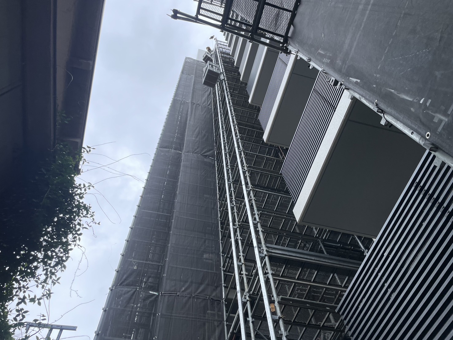 明日7月16日(水)天候をみながら13階~12階の張りと階段の段取りをいたします。