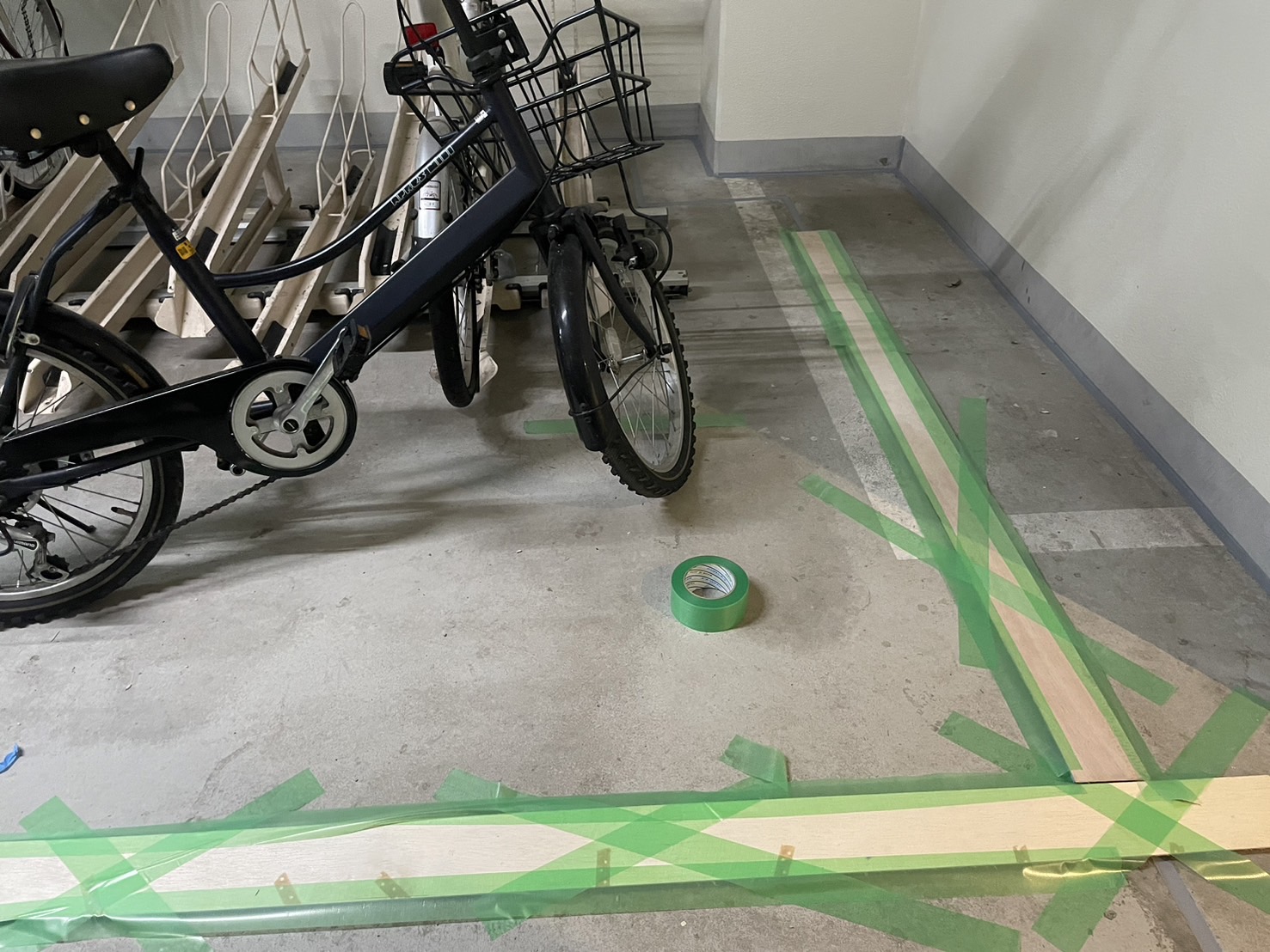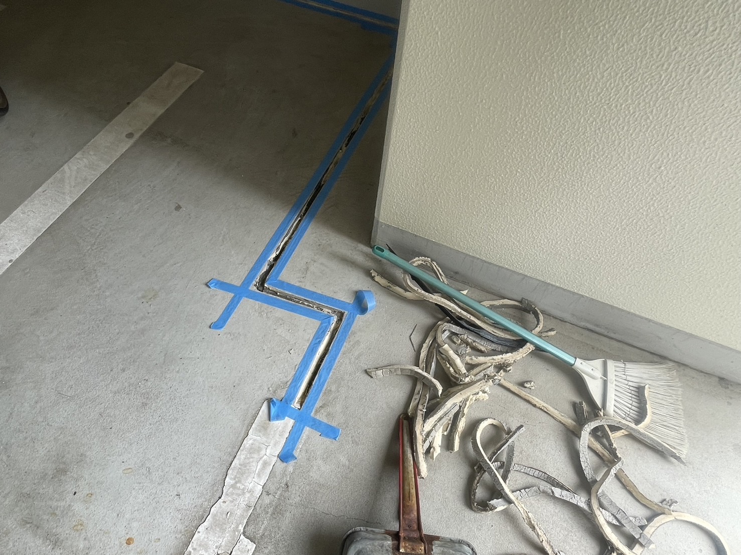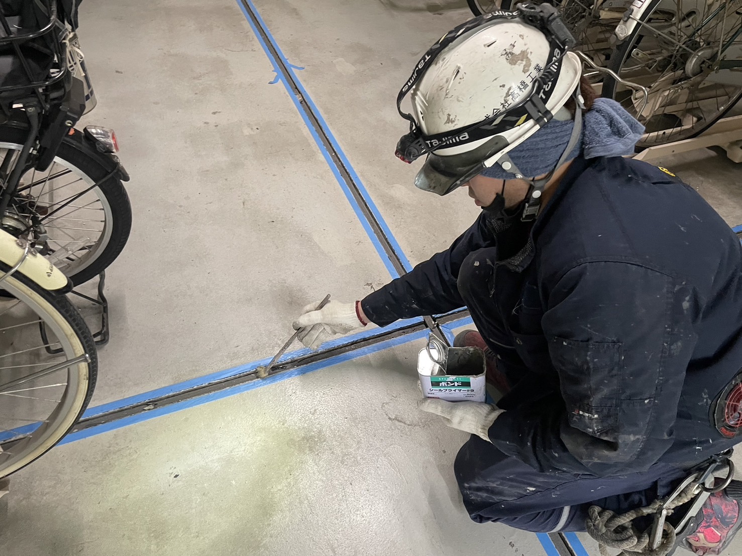 駐輪場床のシーリング打ち替えを始めました。