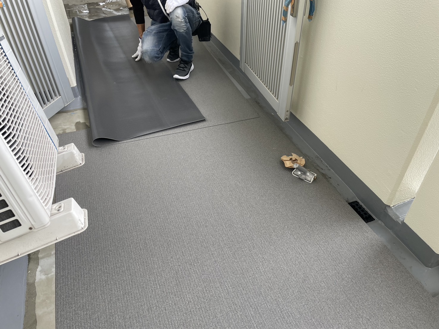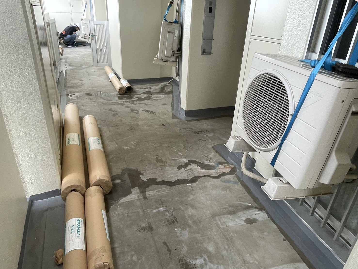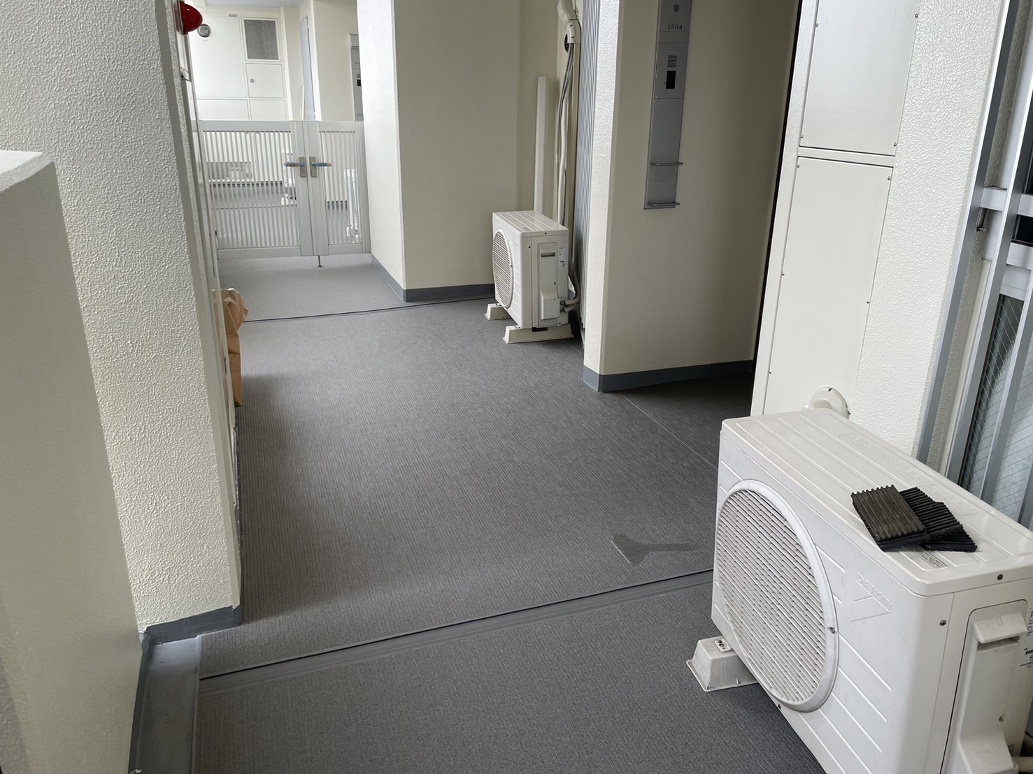 15階~14階の共用廊下の長尺シート張りをおこないました。