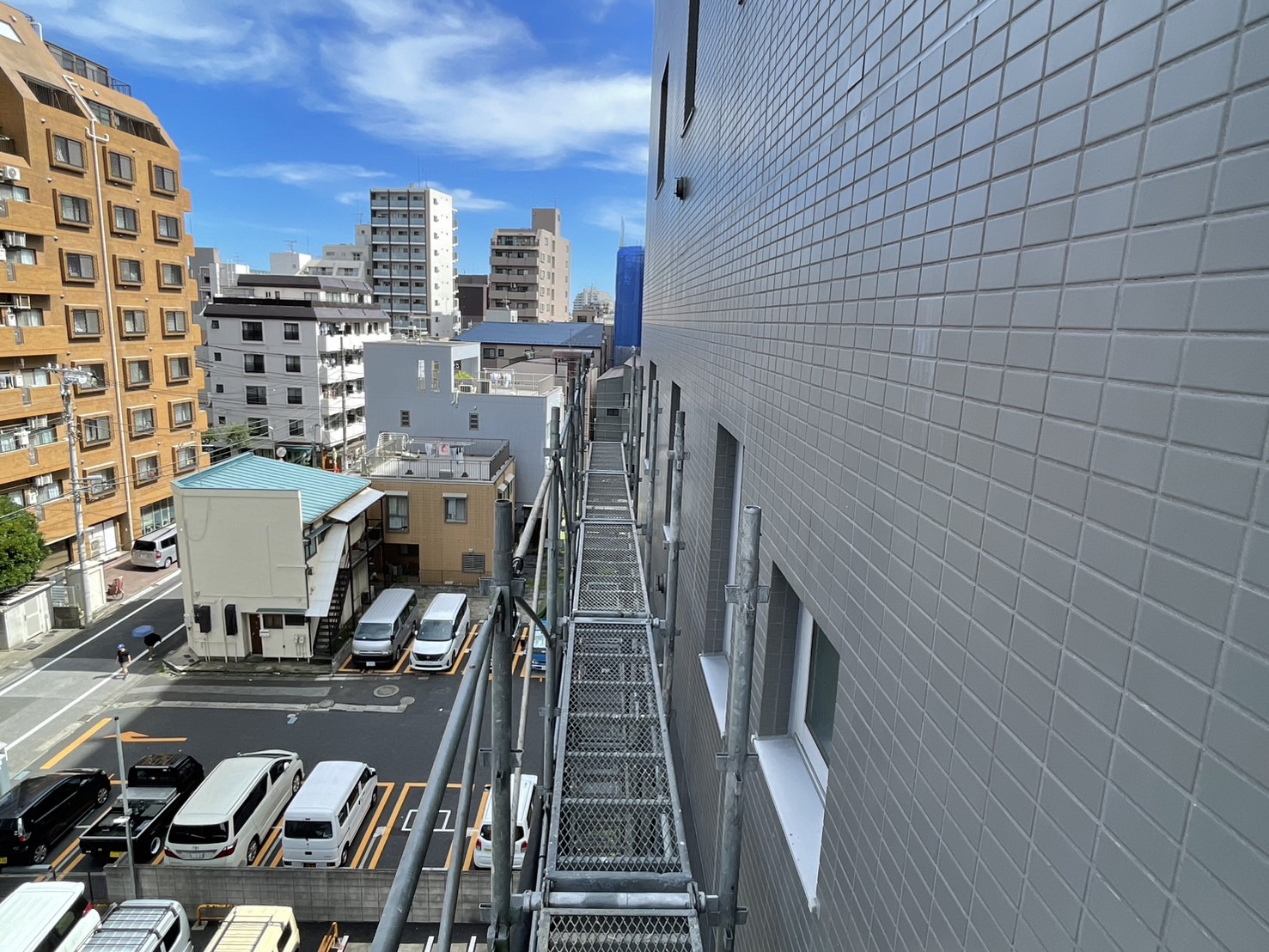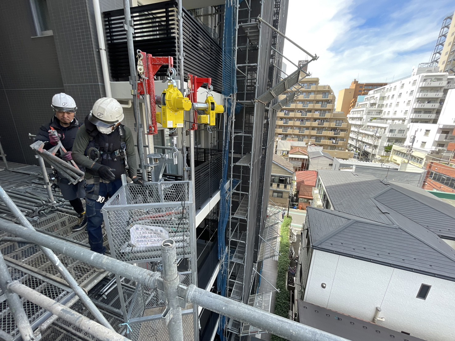 明日19日(土)は4階~1階の張り込みと、溶接工事をおこない、共用階段は7月22日(火)から開始いたします。