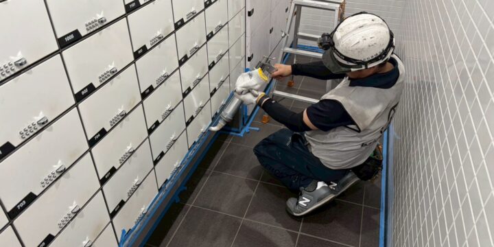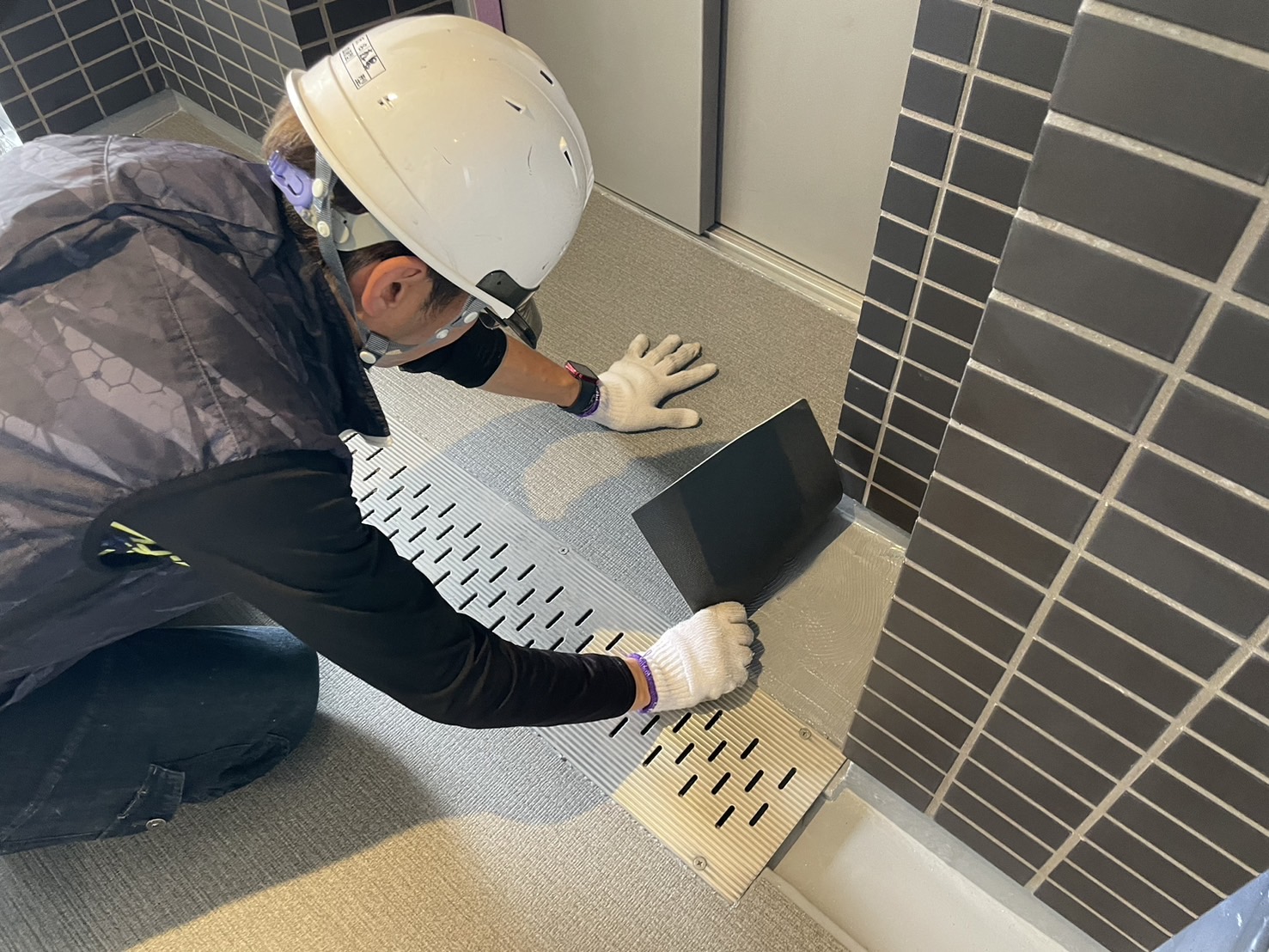 ・その他工事(共用廊下一部養生撤去・手摺キャップ設置)