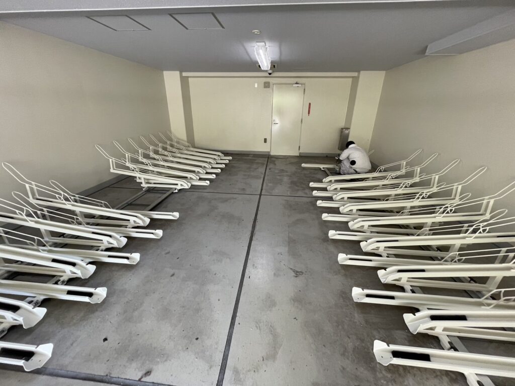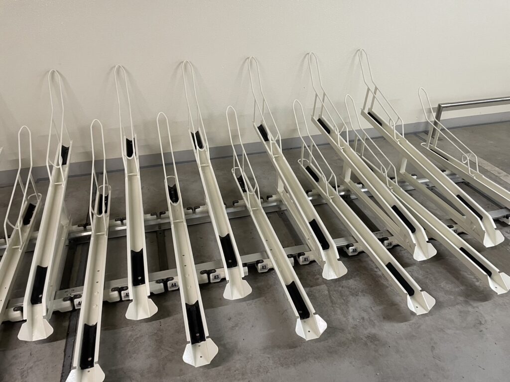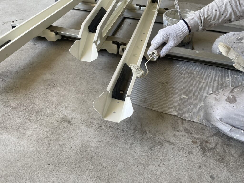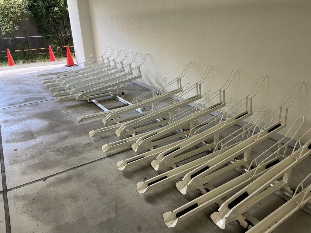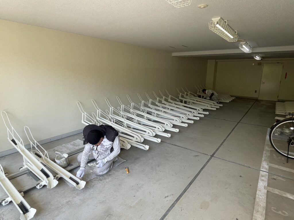 駐輪場の塗装工事は上塗りが完了いたしました。