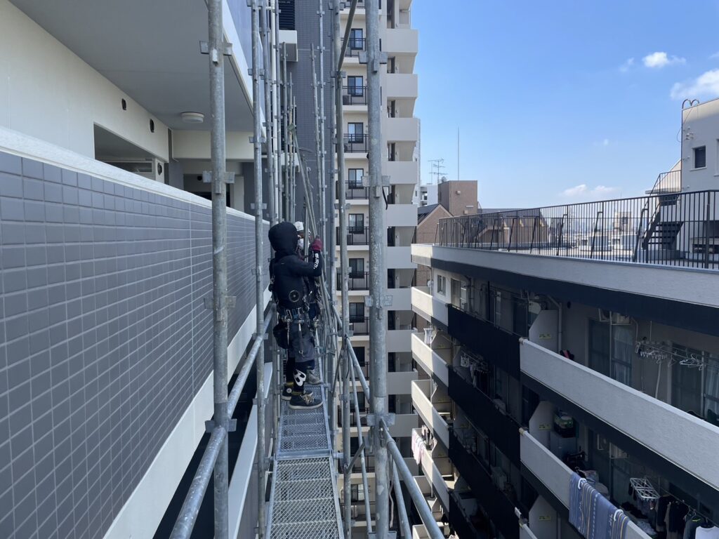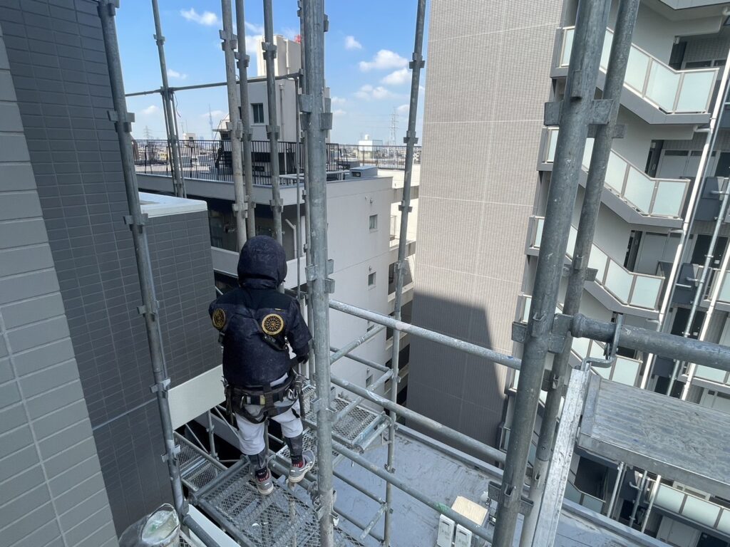 今日は欠けた部分、割れた部分の補修をおこない、明日26日(土)に吹付塗装をおこないます。