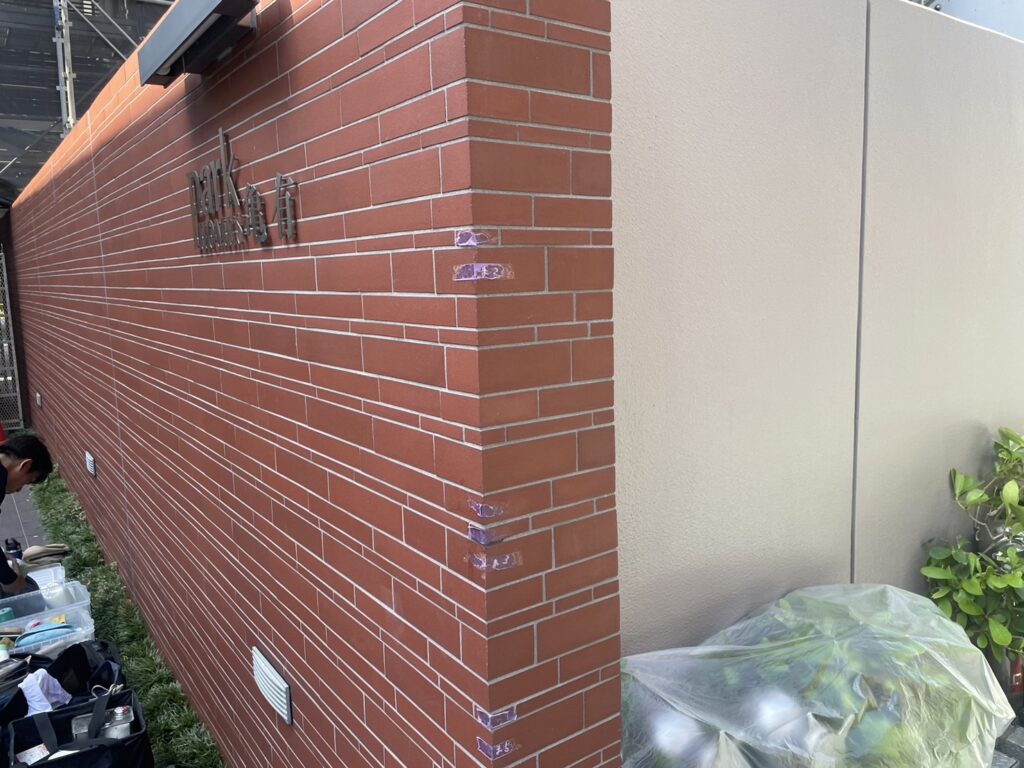 エントランス入り口のレンガタイルのリペア工事をいたしました。