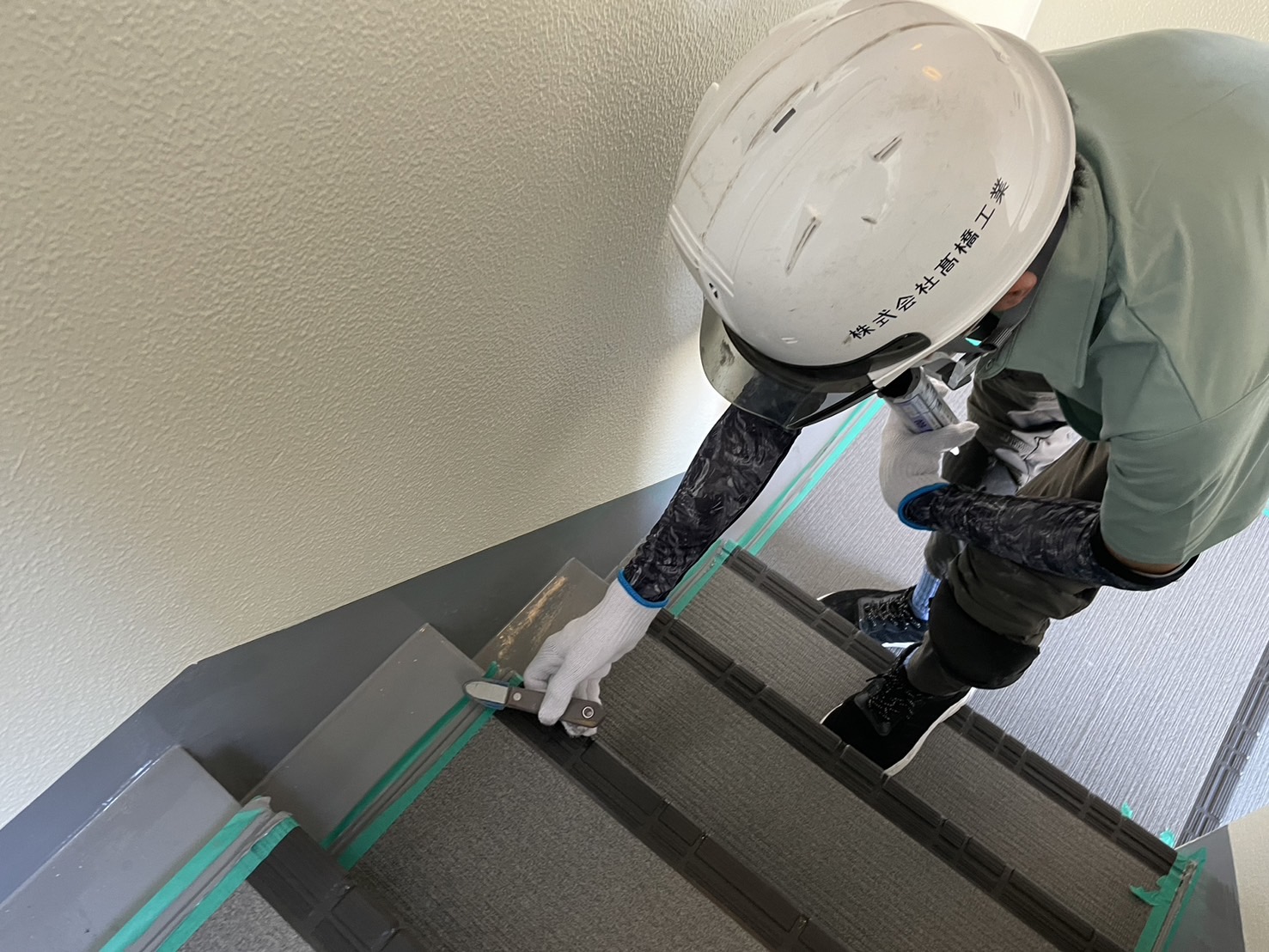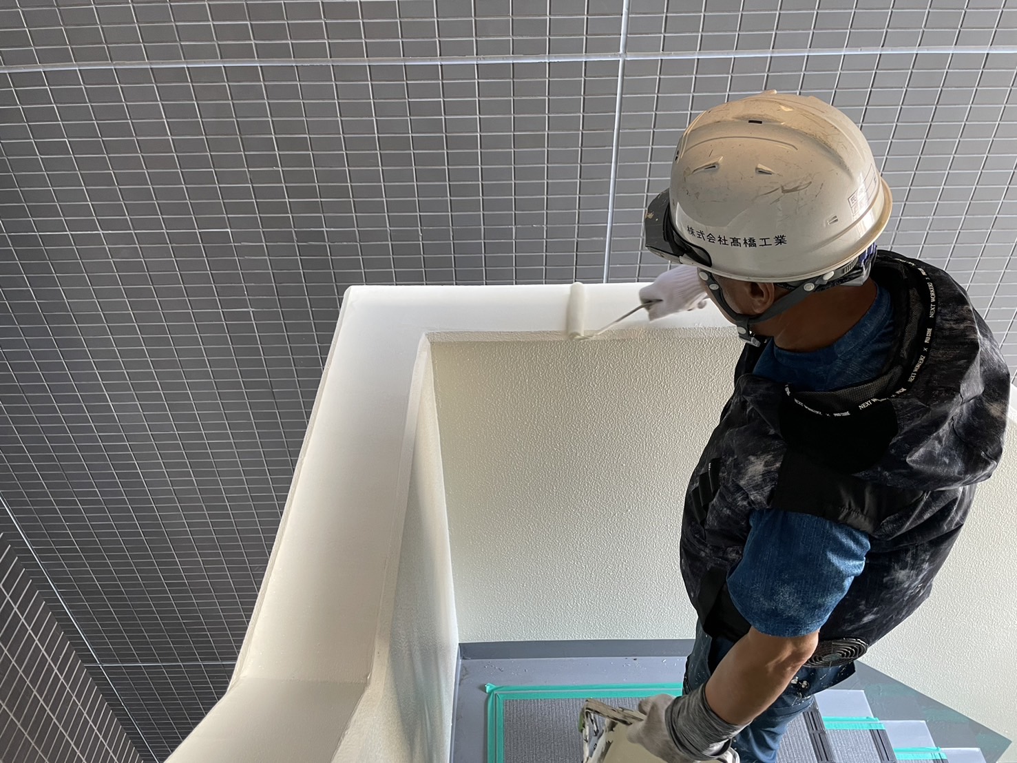 今日は欠けた部分、割れた部分の補修をおこない、明日26日(土)に吹付塗装をおこないます。
