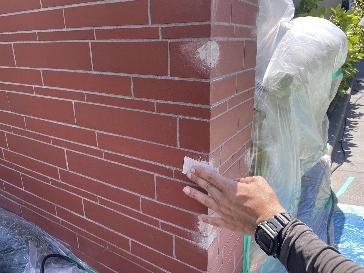エントランス入り口のレンガタイルのリペア工事をいたしました。