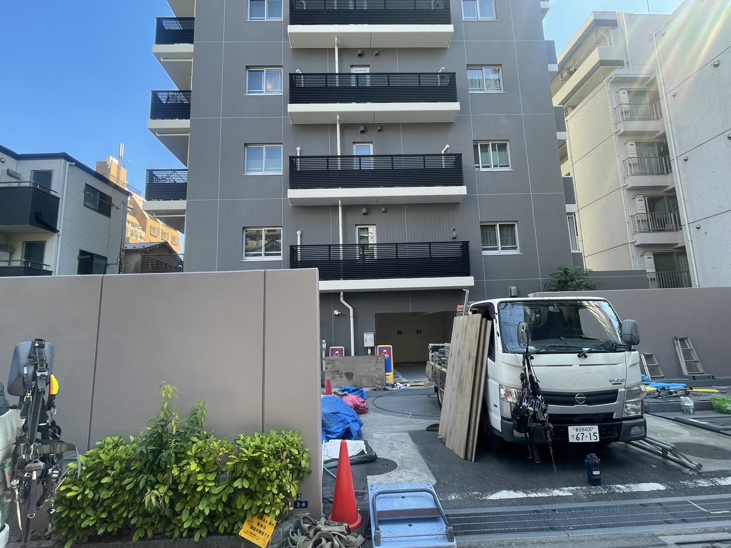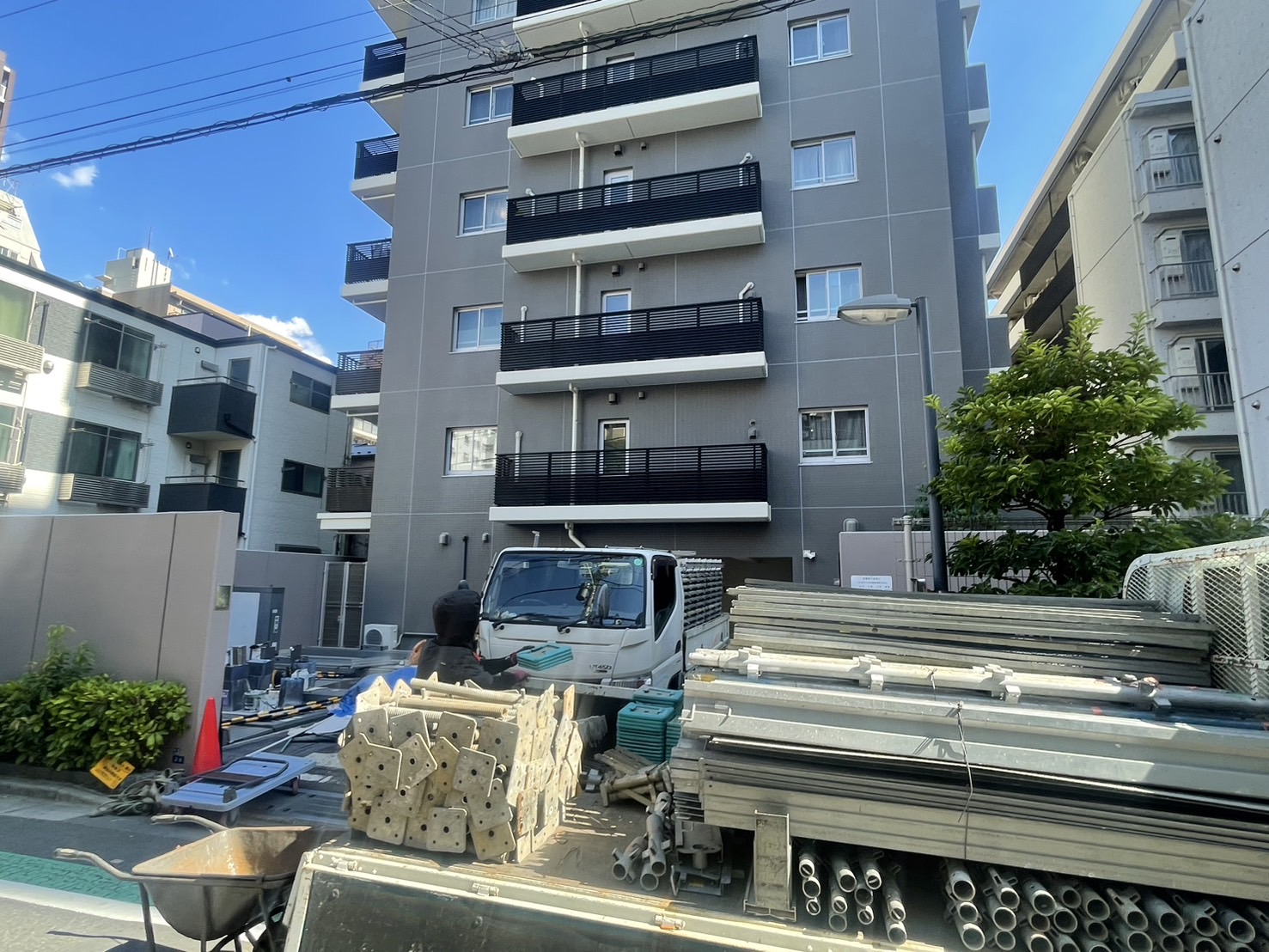 足場解体時のゴミが皆様のバルコニー内に入ってしまいましたが、ご理解の程よろしくお願いいたします。