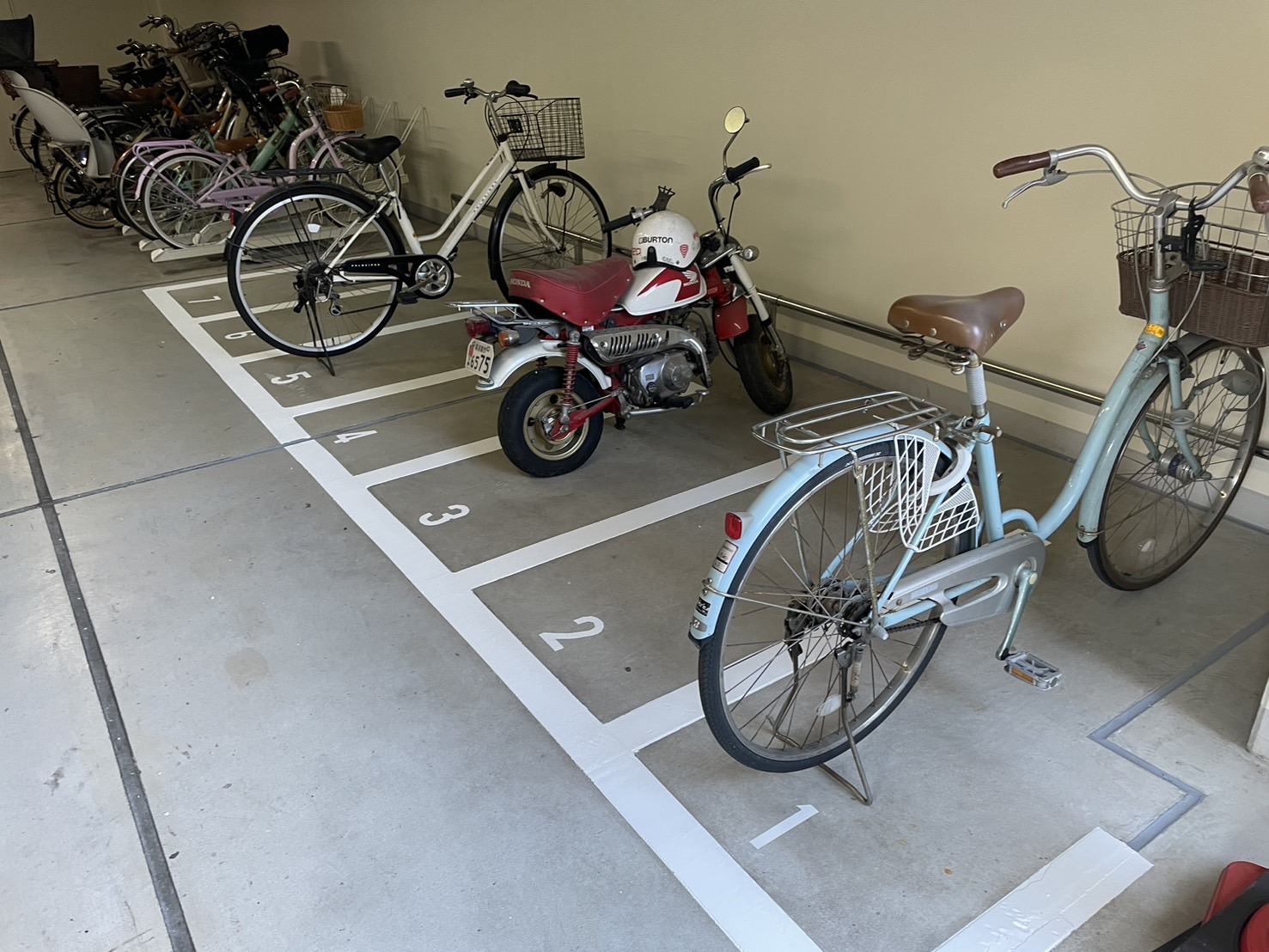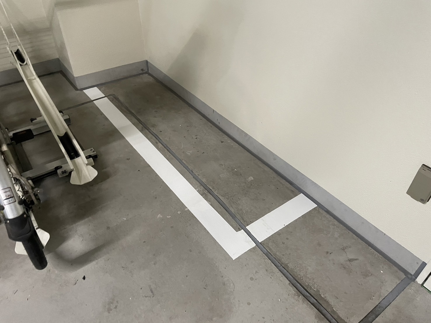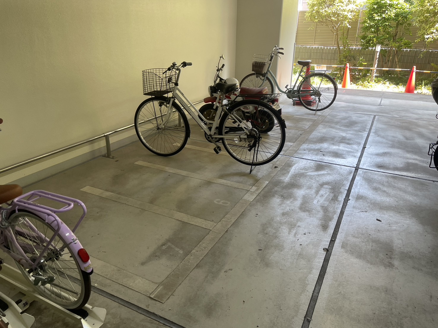 車いす用駐車場の床塗装と白色ライン引き、駐輪場のライン引きが完了いたしました。