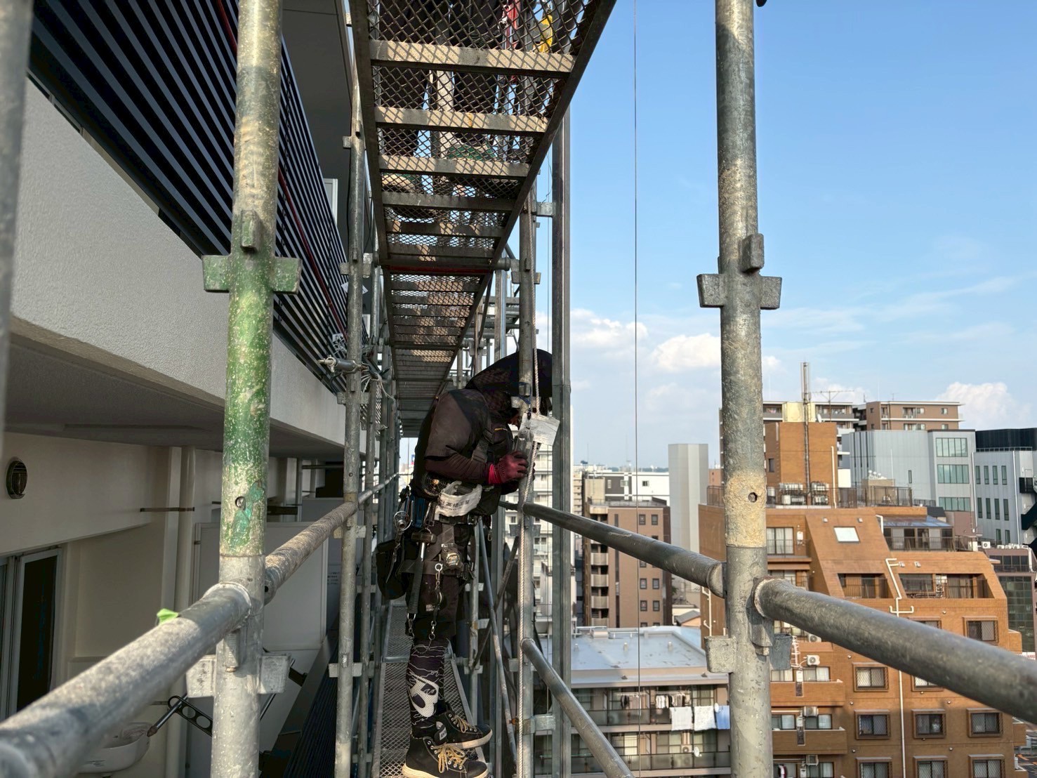 7月5日 土曜日 2025.07.08工事情報 HOME ブログ 工事情報 7月5日 土曜日 足場解体工事 A棟13階から11階までの足場解体をおこないました。 熱中症対策としてこまめに水を飲み作業いたしました。 次回7月8日㈫から11階からの解体をおこないます。 ウレタン防水工事 共用廊下の防水工事が完了いたしました。 踏まないようにご協力ありがとうございました。 引き続き階段の防水工事をおこなうため階段をお使いの方は踏まにように注意して下さい。 7月6日 日曜日 予定 ・B棟立ち合い検査 7月7日 月曜日 予定 ・ウレタン防水工事 工事情報 7月4日 金曜日 7月7日 月曜日 関連記事一覧 6月9日 2025.06.09工事情報 6月14日 土曜日 2025.06.16工事情報 6月4日 水曜日 2025.06.04工事情報 5月13日 火曜日 2025.05.13工事情報