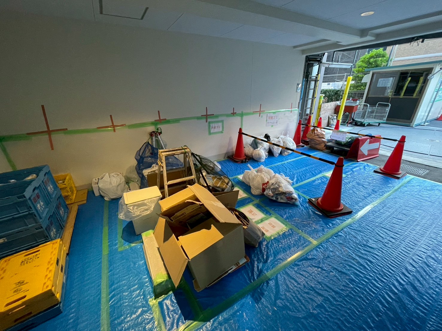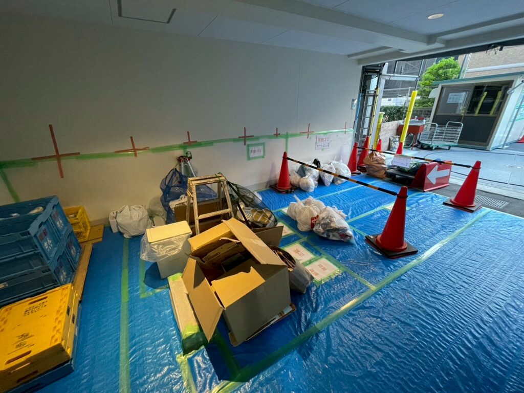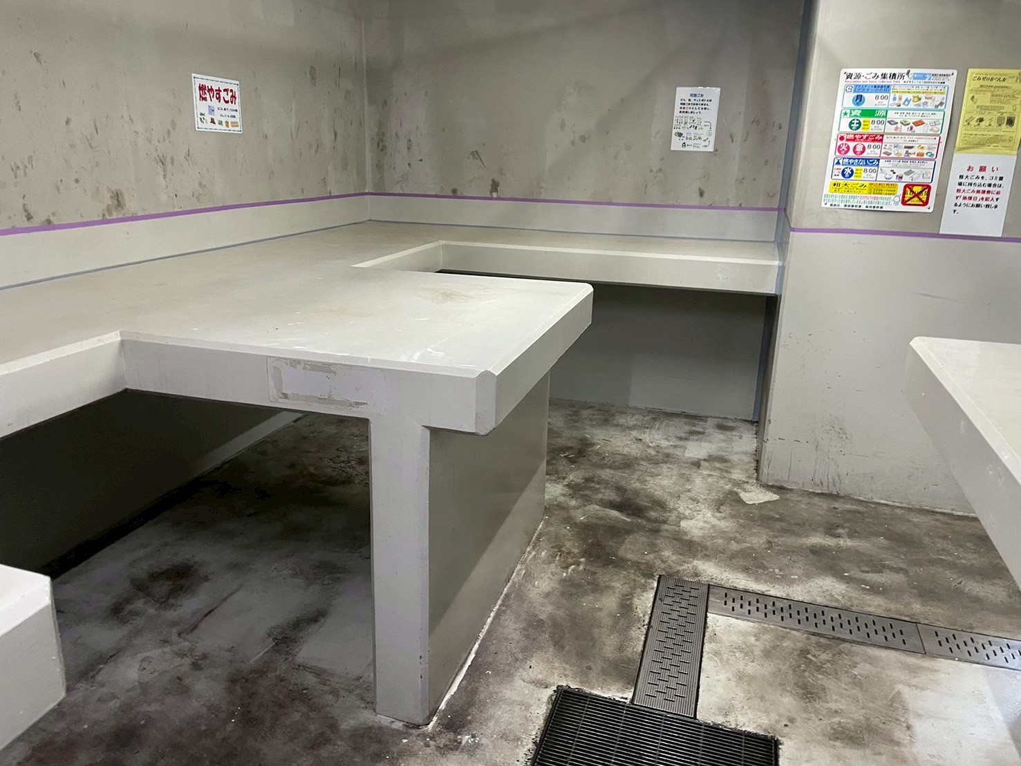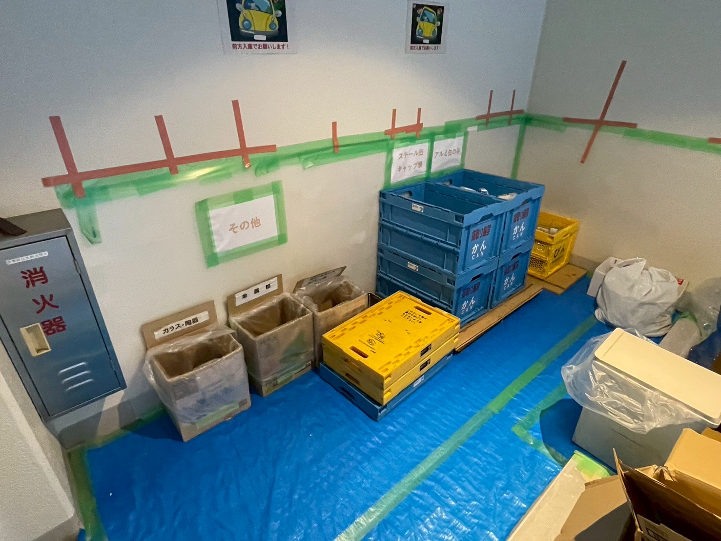 車いす用駐車場に仮ゴミ置き場を設置いたしました。