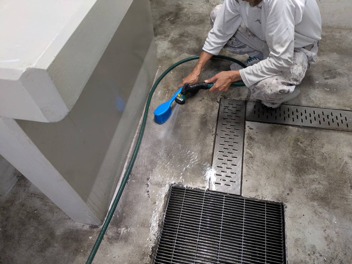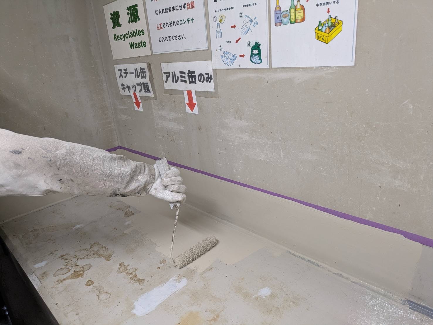 ゴミ置き場の塗装工事が始まりました。12日(土)までゴミ置き場の塗装を予定しております。