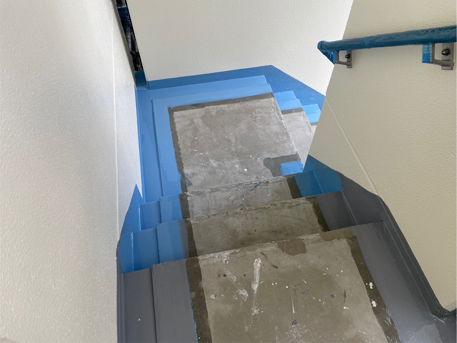 4階から1階は片側がウレタン2層目まで作業が進んでおります。