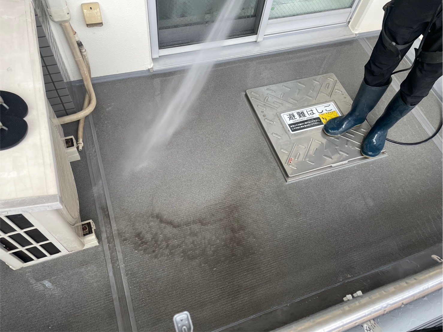 B棟(1号室、2号室)のバルコニー・サービスバルコニーの高圧洗浄工事をおこないました。