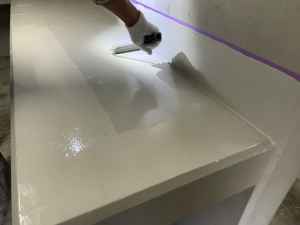 ウレタン2層目塗布をおこないました。7月12日㈯に共用階段のウレタン防水は完了予定になります。